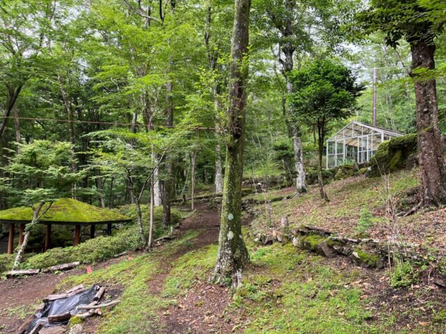 苔むした屋根が印象的な東屋、池、ガラス温室付!